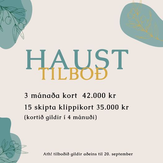 Setjum heilsuna inn í skipulagið og gerum ráð fyrir jóga í hverri viku. Hljómar það ekki eins og eitthvað sem bætir, mýkir og kætir? Hér eru frábær tilboð fyrir þig til að koma þér vel inn í haustið 3 mánaða kort á 42.000 kr – almennt verð 46.900 kr 15 skipta klippikort á 32.000 kr Nánar